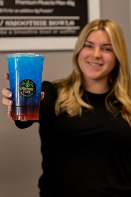 Since Fortune Fuel opened in August of 2025, they have donated over a thousand teas within the community to bus drivers, teachers, schools, businesses, and organizations. They do walks, pair up with dance studios and participate in festivals & fairs like the Four Towns Fair. “The word has been getting out,” LaFortune said, “We’re trying to reach people through social media and word of mouth. Week after week, we get a little busier, word of mouth is spreading, and people are really liking what they get from us. We want to grow and fill the bar every day. Make it be the go-to place, and community connection.”