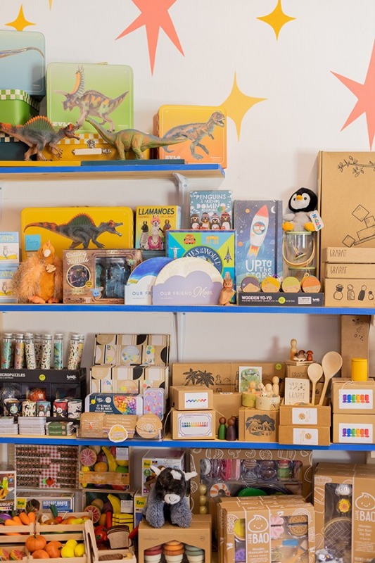 What sets Yonder apart is the emphasis on presence and connection. While toys line the shelves, Curry is quick to point out that the playroom is the heart of the space. “The toy shop is really our hobby business. The playroom is what really draws the crowds,” she said. Her vision was to create comfort rather than stimulation overload. “My hope was to create a home away from home. I want folks to feel at ease when they come here. To know they can unwind and let the kids do the same.”
